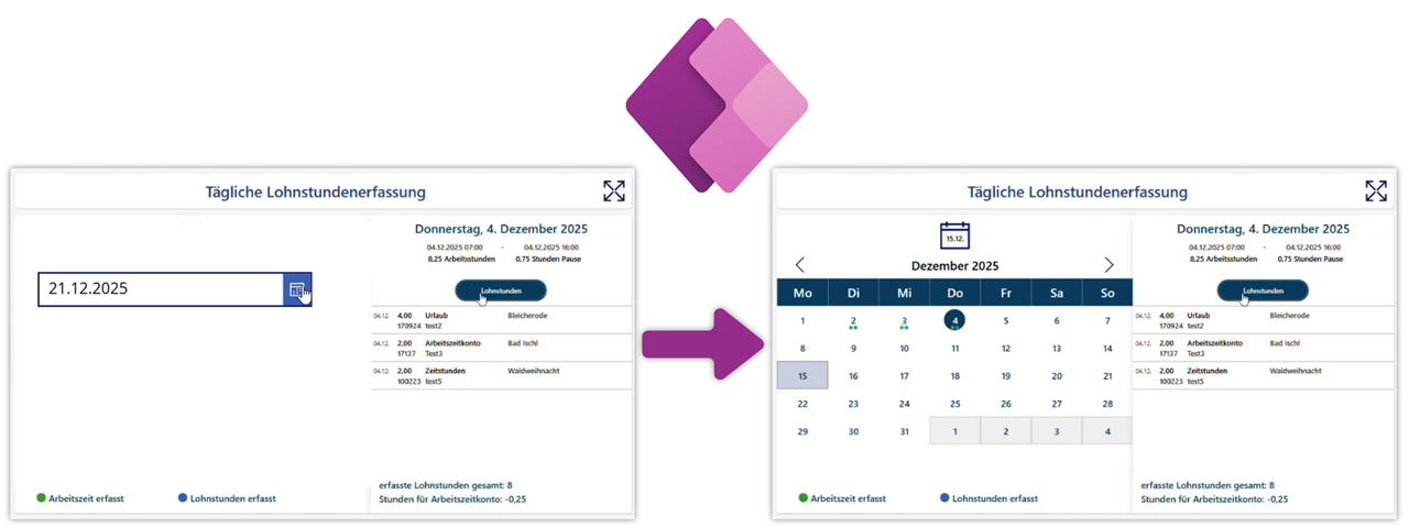 Damit du im Kalender visuell siehst, an welchen Tagen Daten existieren, kannst du dynamisch aus den Kalenderelementen auf die SharePoint-Liste zugreifen. So kannst du prüfen, ob Einträge zu diesem Tag vorhanden sind.